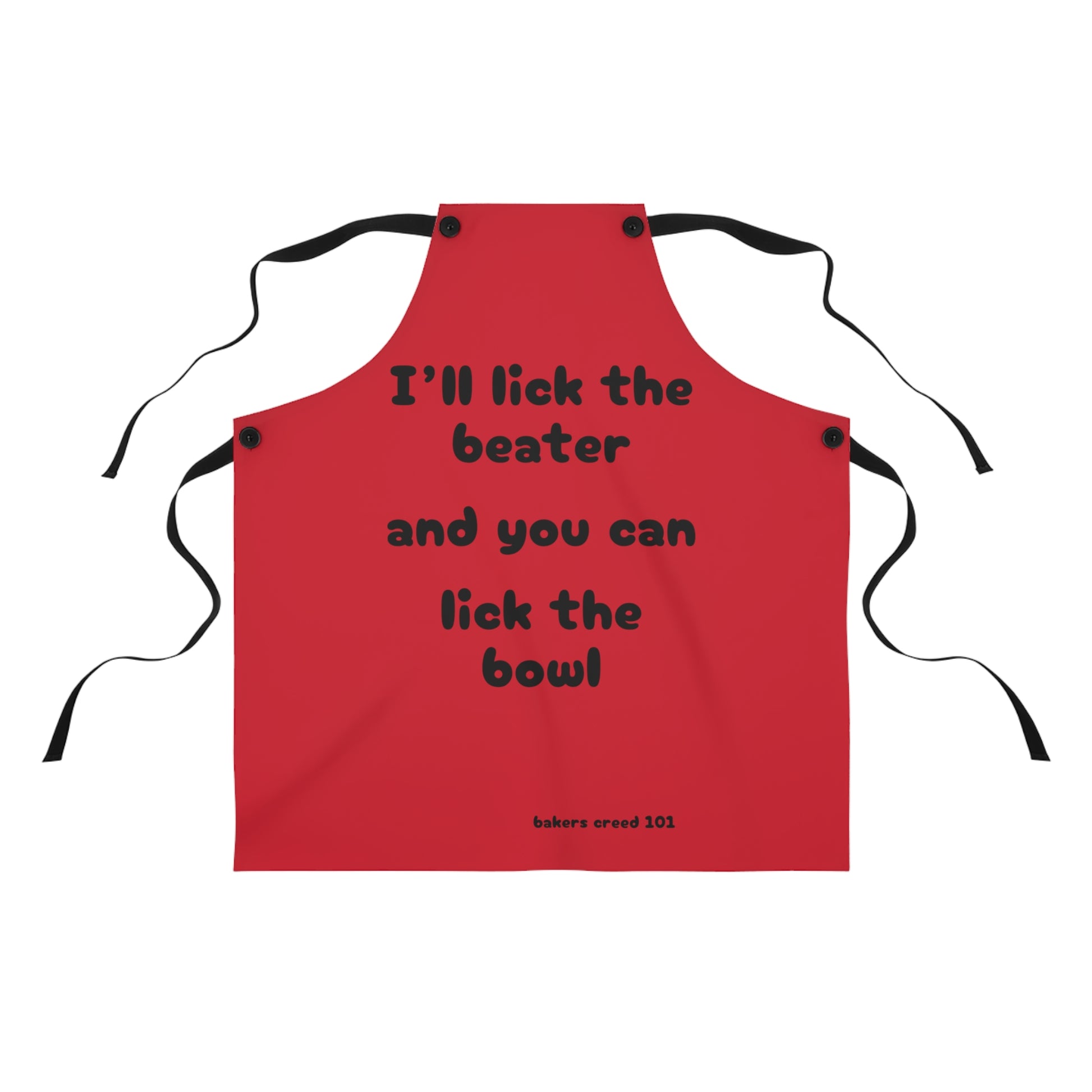 "I'll lick the beater and you can lick the bowl" (black on red) Apron BB100bdr