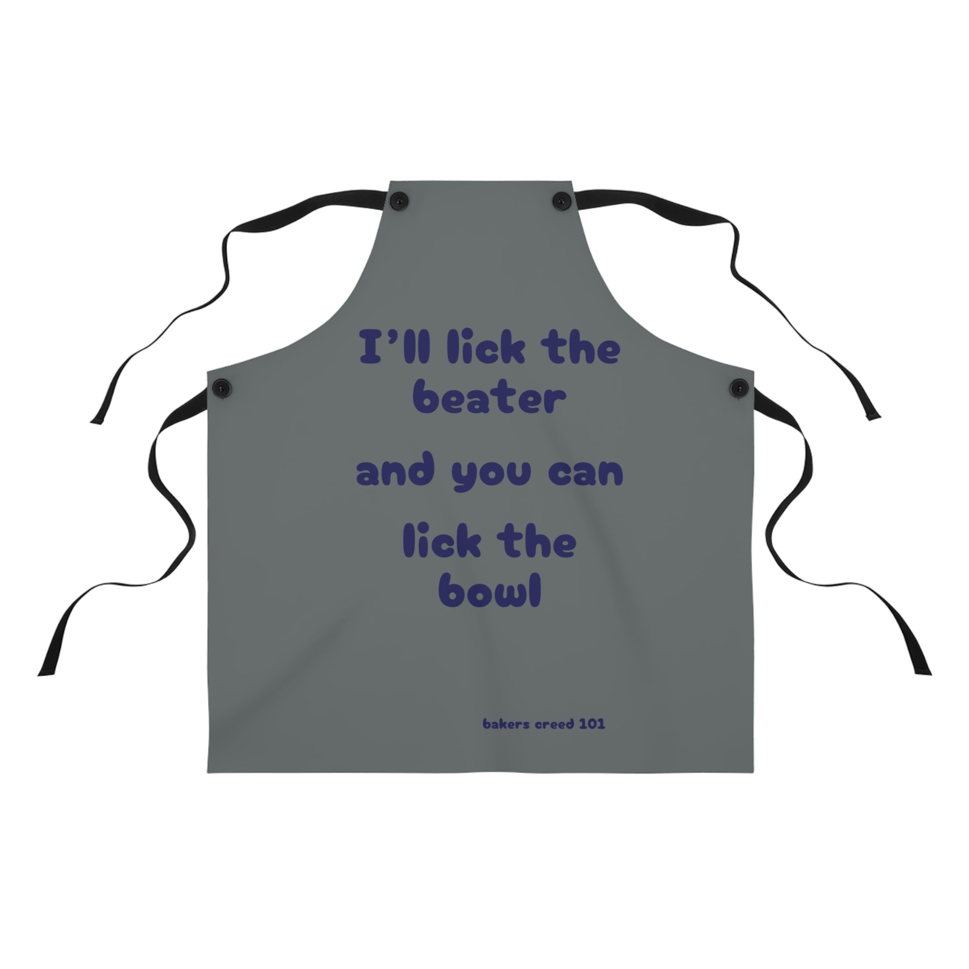 "I'll lick the beater and you can lick the bowl" (blue on dark gray) Apron BB110bldgx