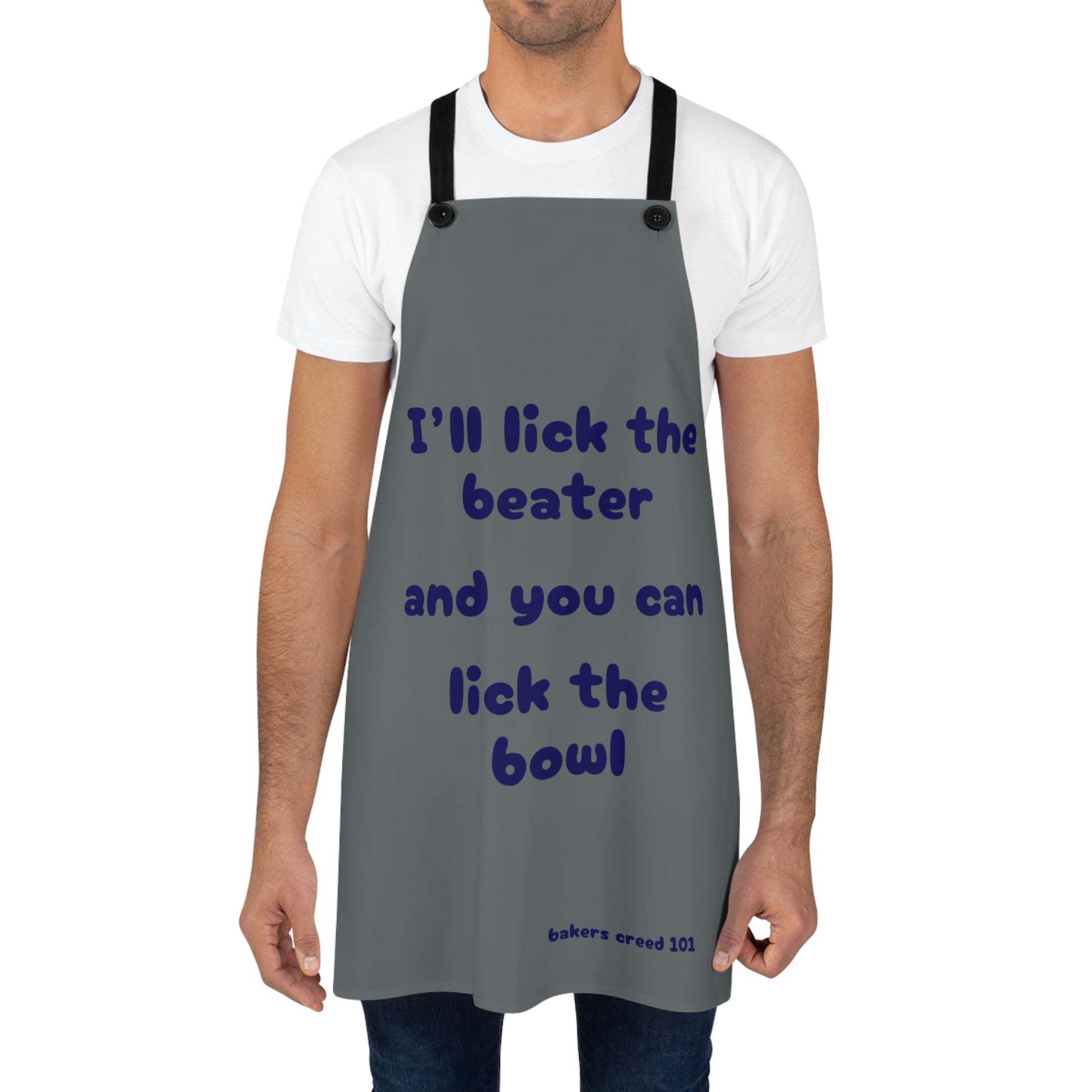 "I'll lick the beater and you can lick the bowl" (blue on dark gray) Apron BB110bldgx