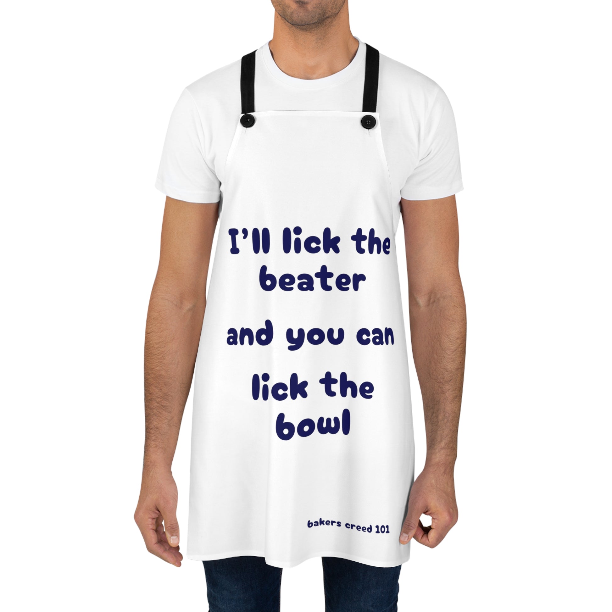 "I'll lick the beater and you can lick the bowl" (blue on white) Apron BB110blw
