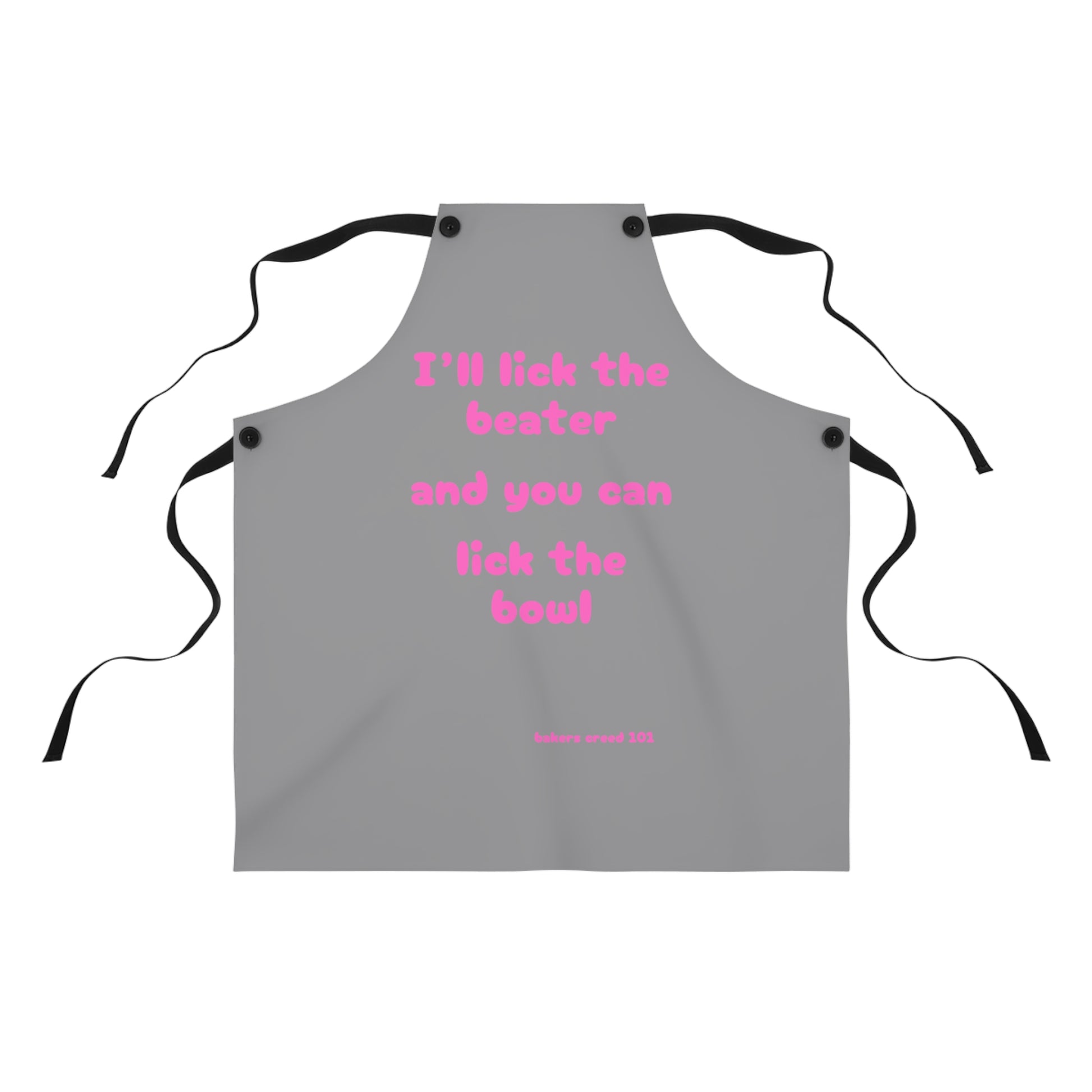 "I'll Lick the Beater and you can lick the bowl" (pink on gray) Apron BB006pg