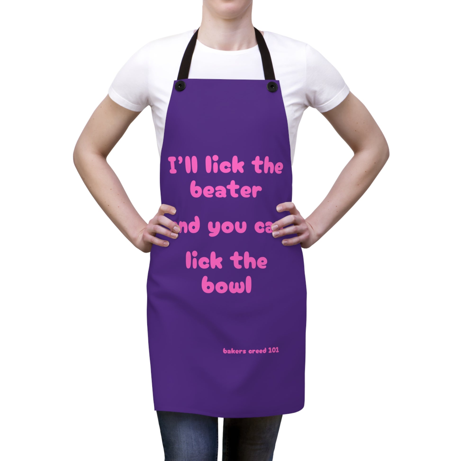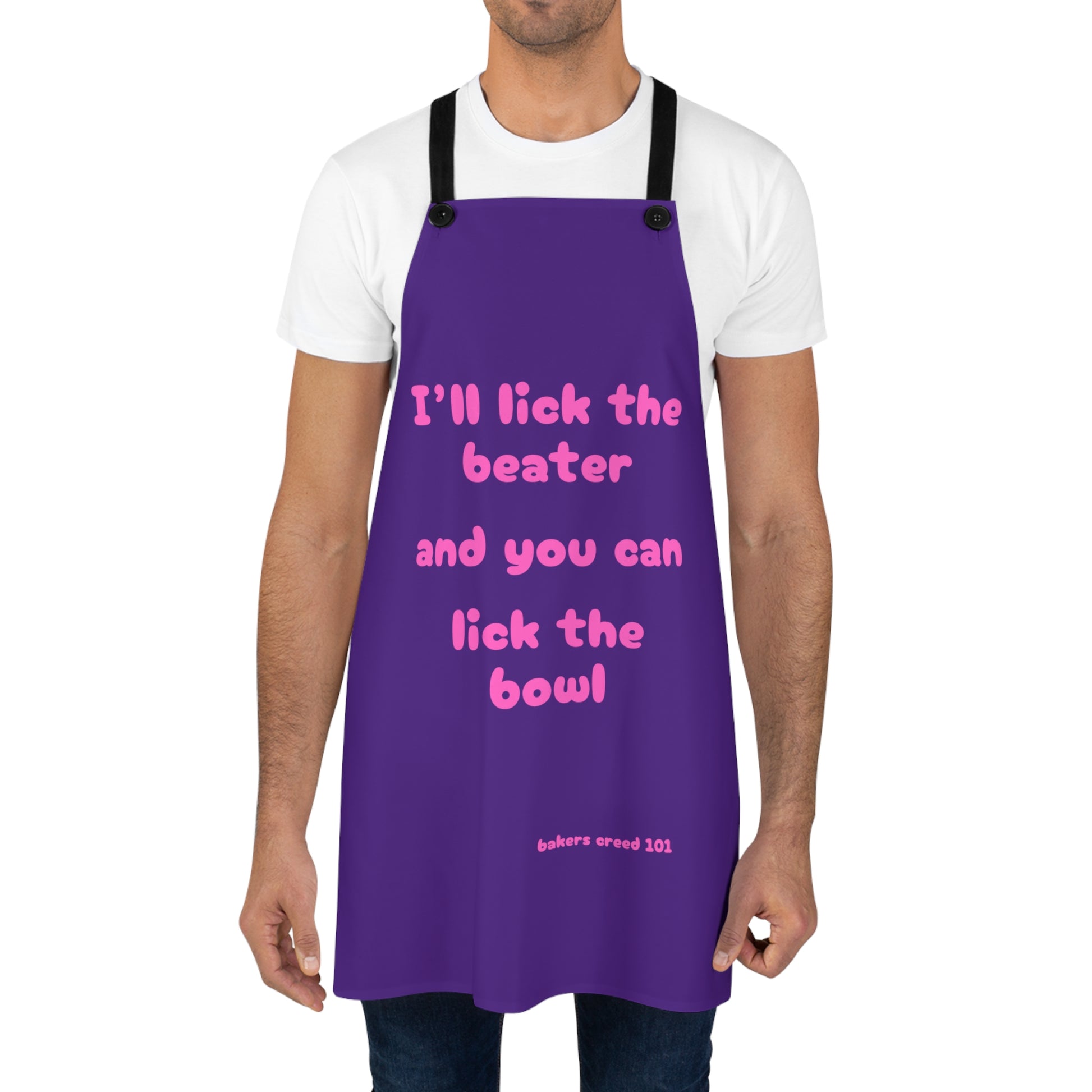 "I'll lick the beater and you can lick the bowl" (pink on purple) Apron BB004pp