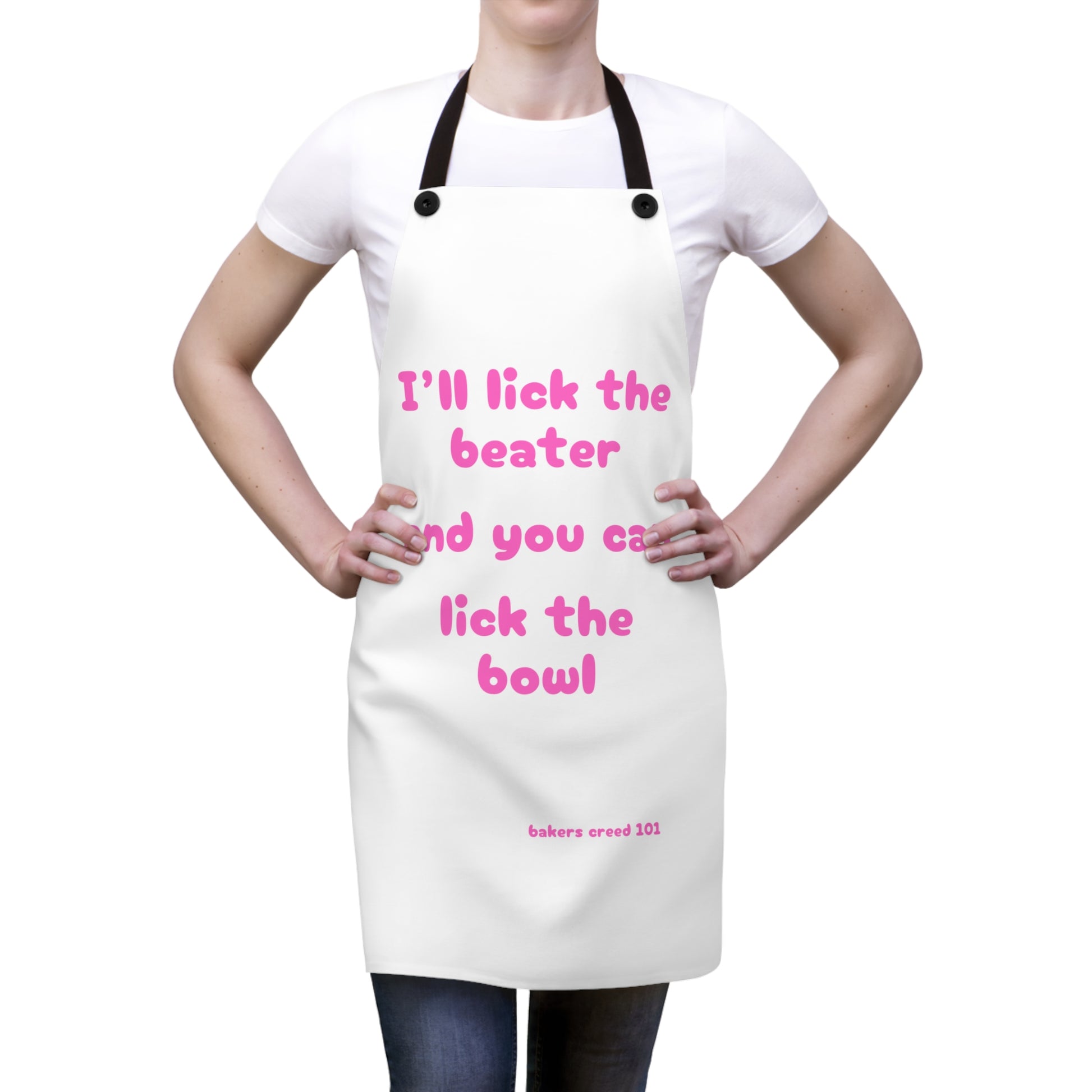 "I'll lick the beater and you can lick the bowl" (pink on white) Apron BB005pw