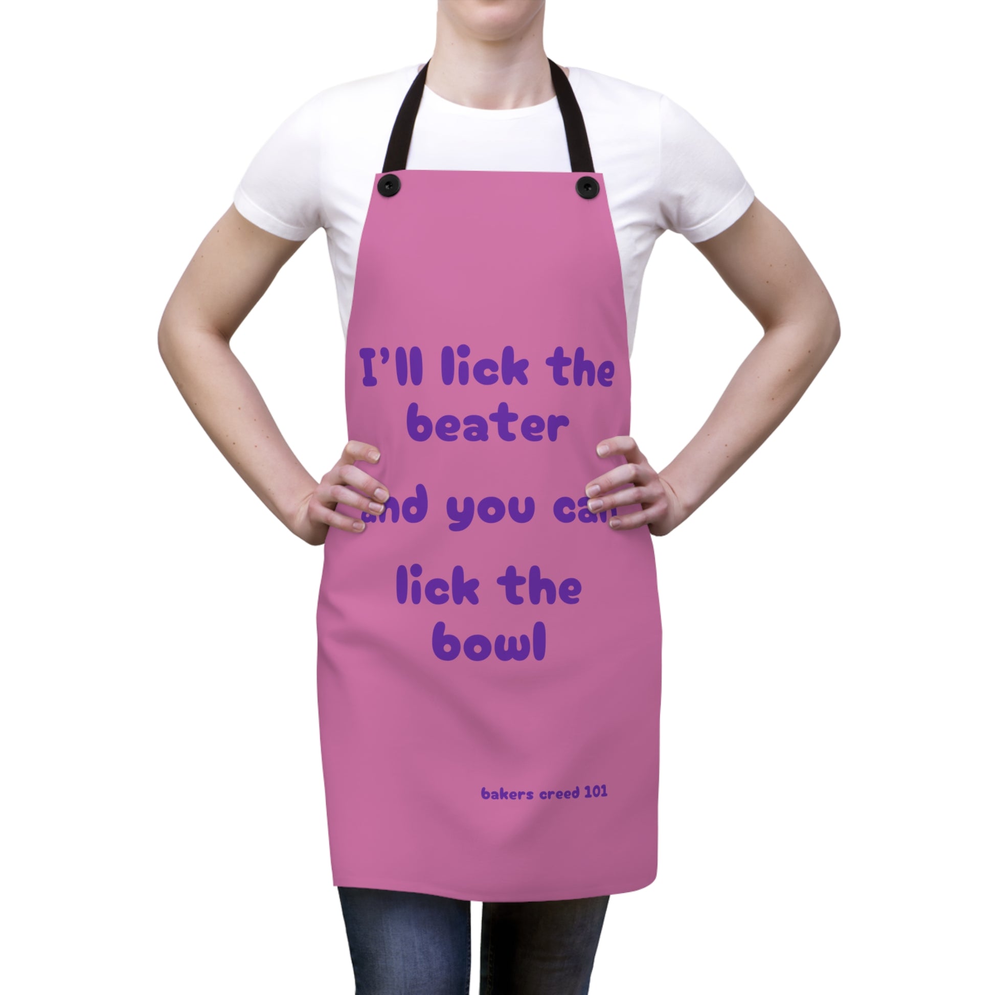 "I'll lick the beater and you can lick the bowl" (purple on light pink) Apron BB013pplp