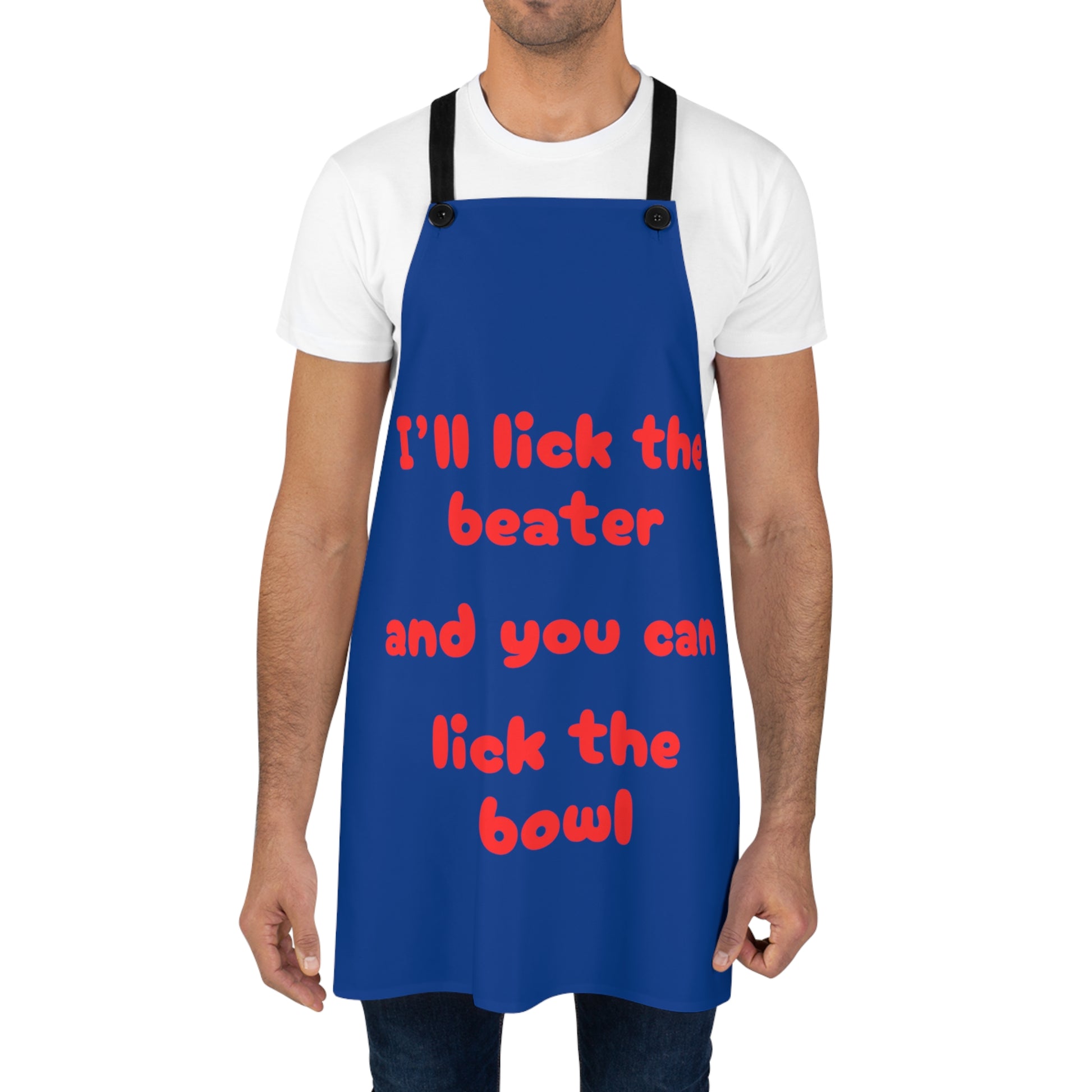 "I'll lick the beater and you can lick the bowl" (red on blue) Apron BB042rbl