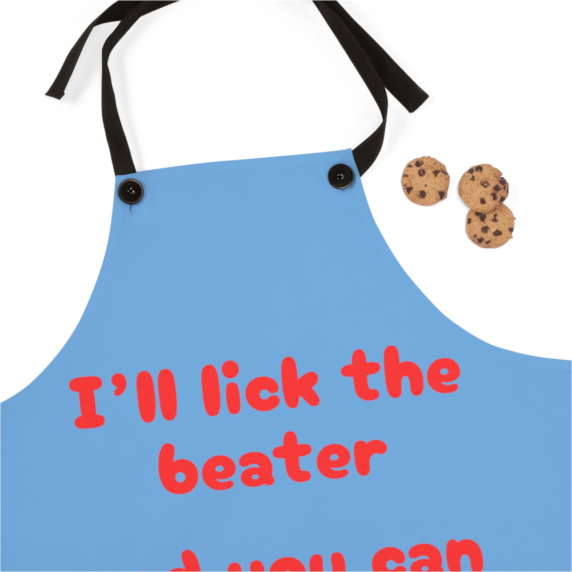 "I'll lick the beater and you can lick the bowl" (red on light blue) Apron BB042rlbl