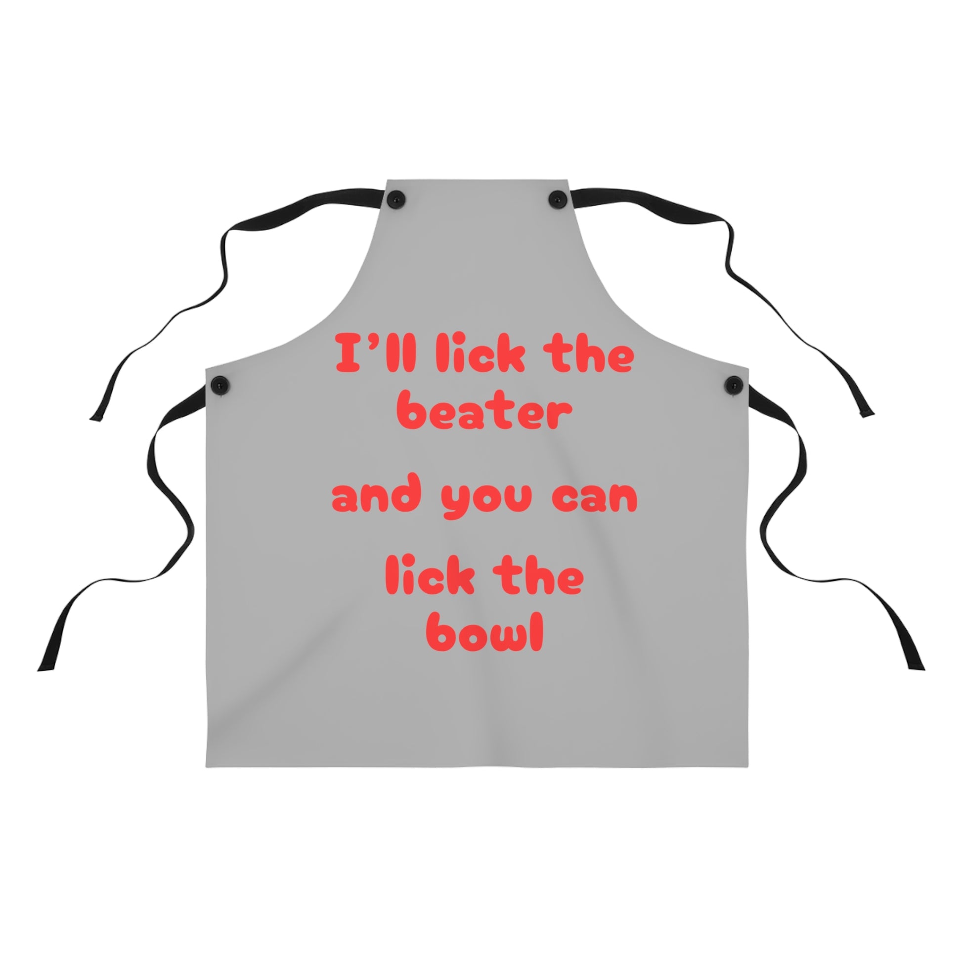 "I'll lick the beater and you can lick the bowl" (red on light gray) Apron BB042rlg