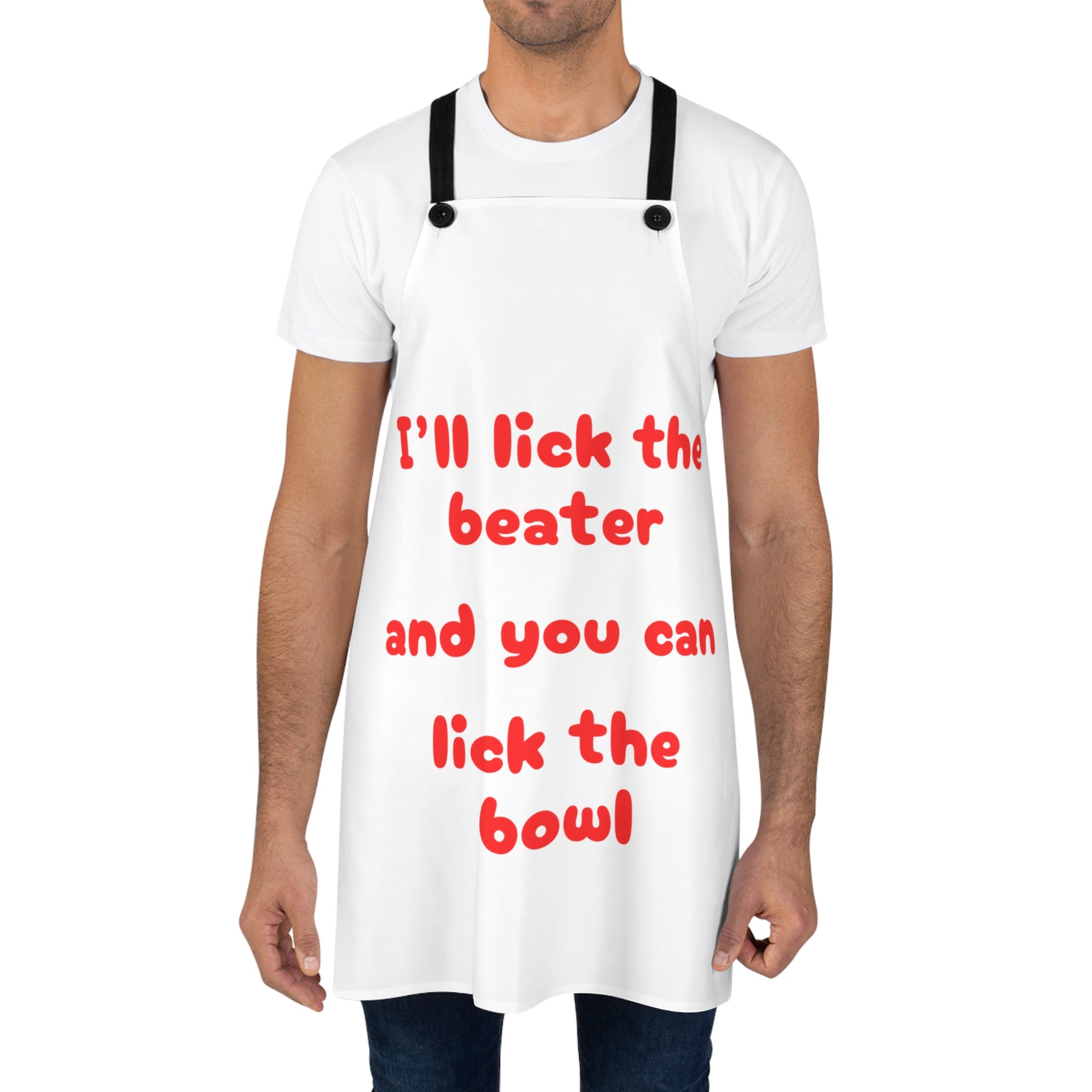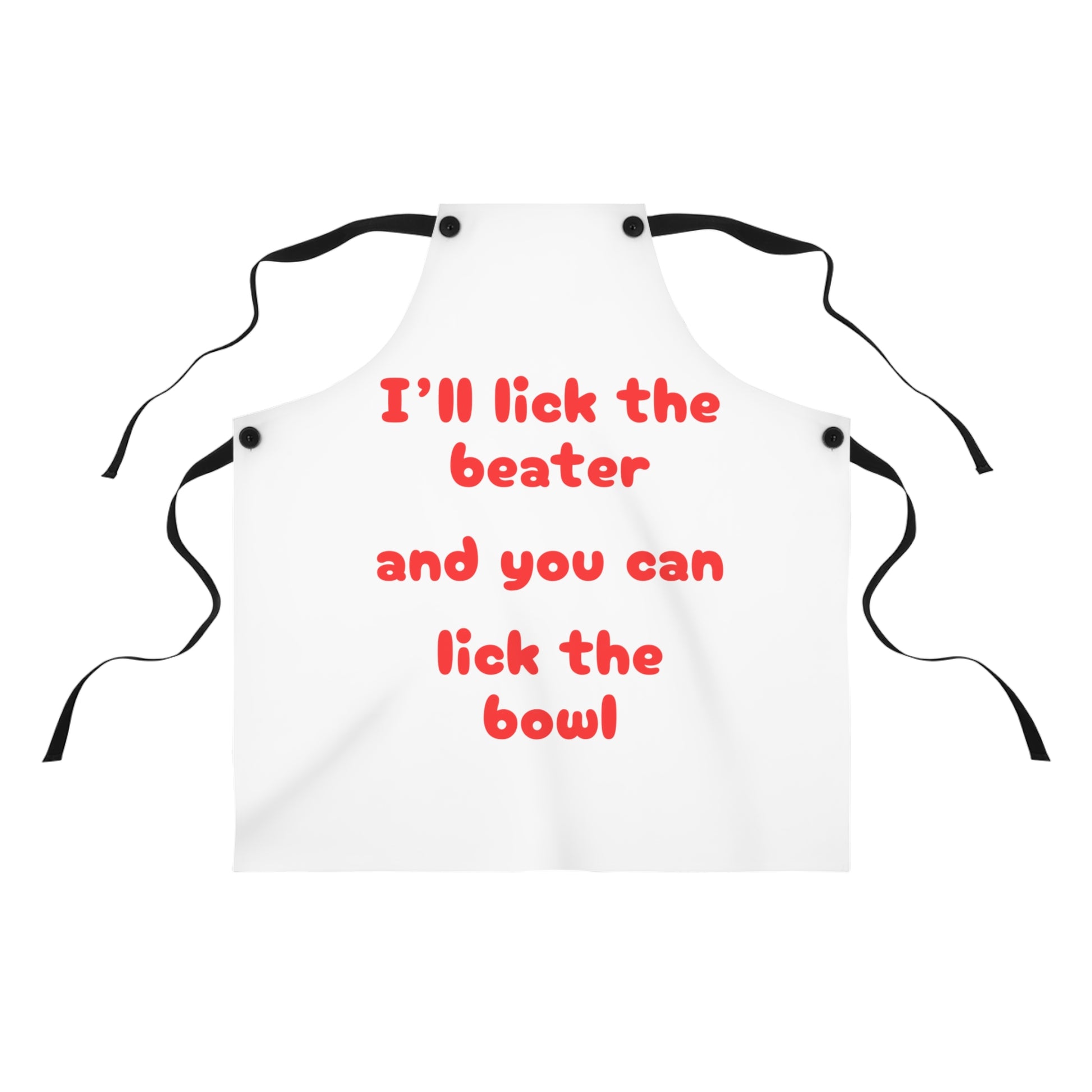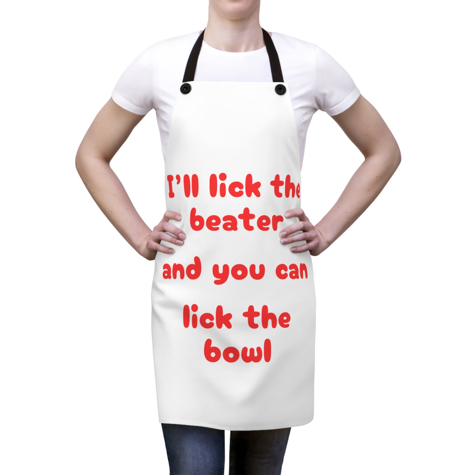 "I'll lick the beater and you can lick the bowl" (red on white) Apron BB042rw