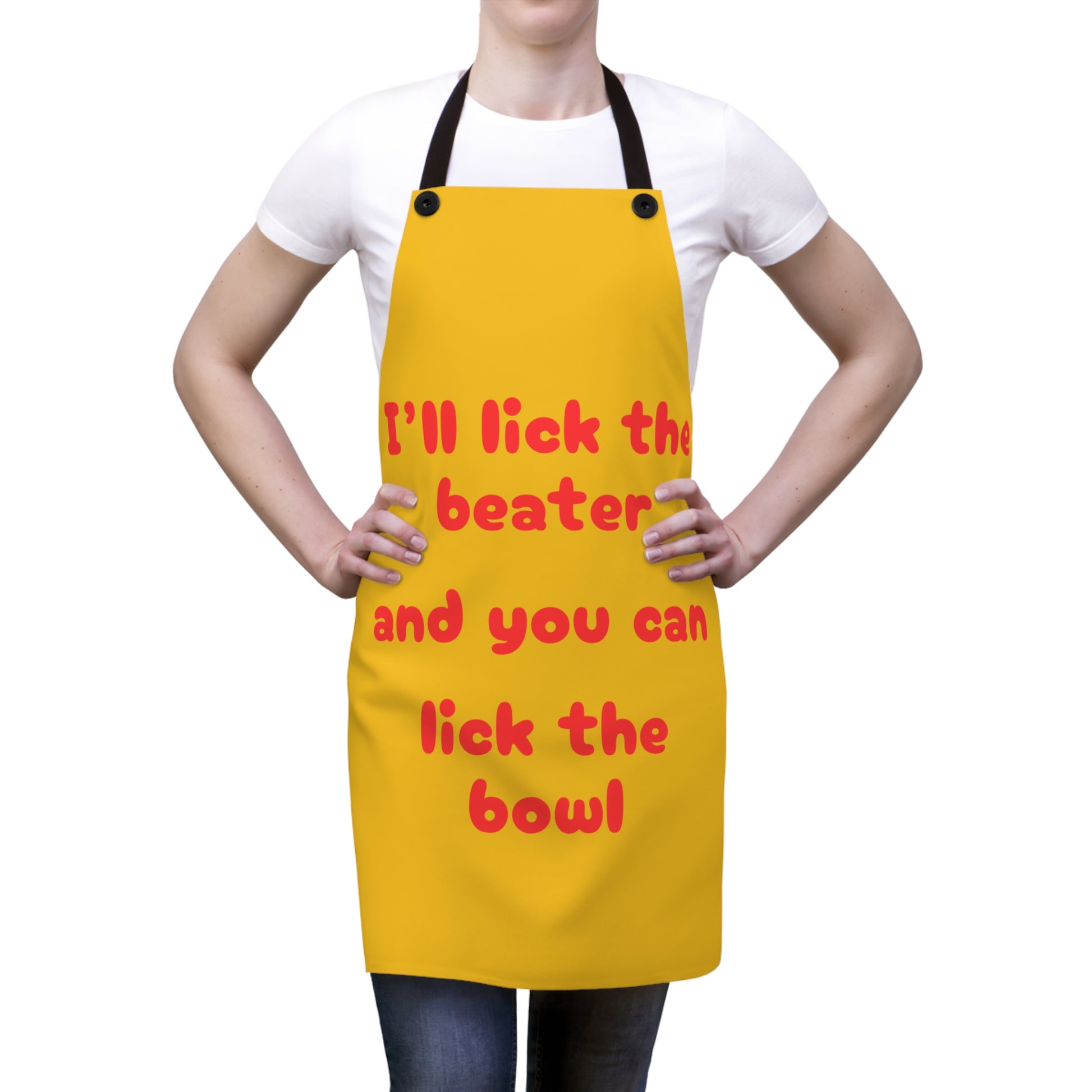 "I'll lick the beater and you can lick the bowl" (red on yellow) Apron BB042ry