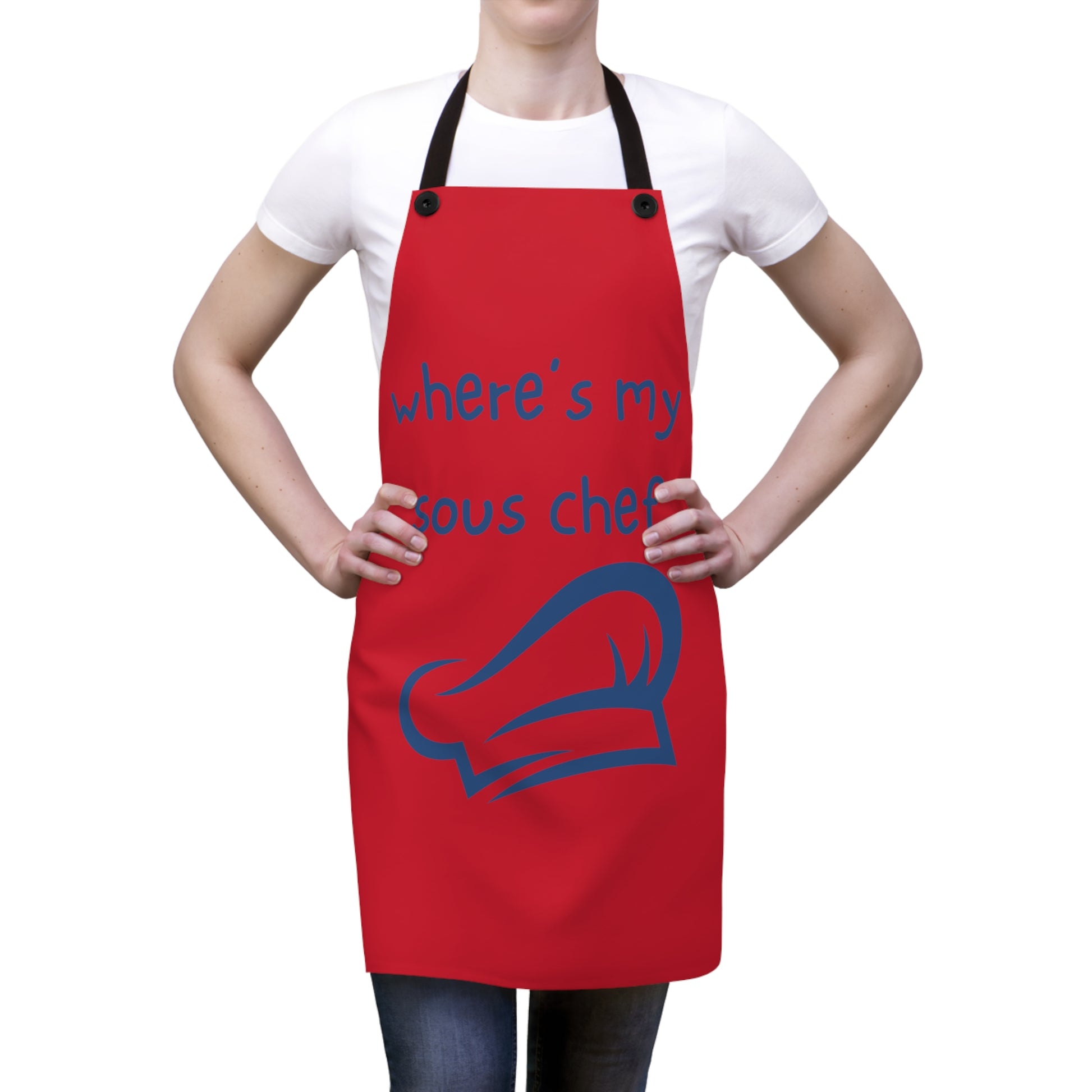 "Where's My Sous Chef" (blue on dark red) Apron SC46sbdr
